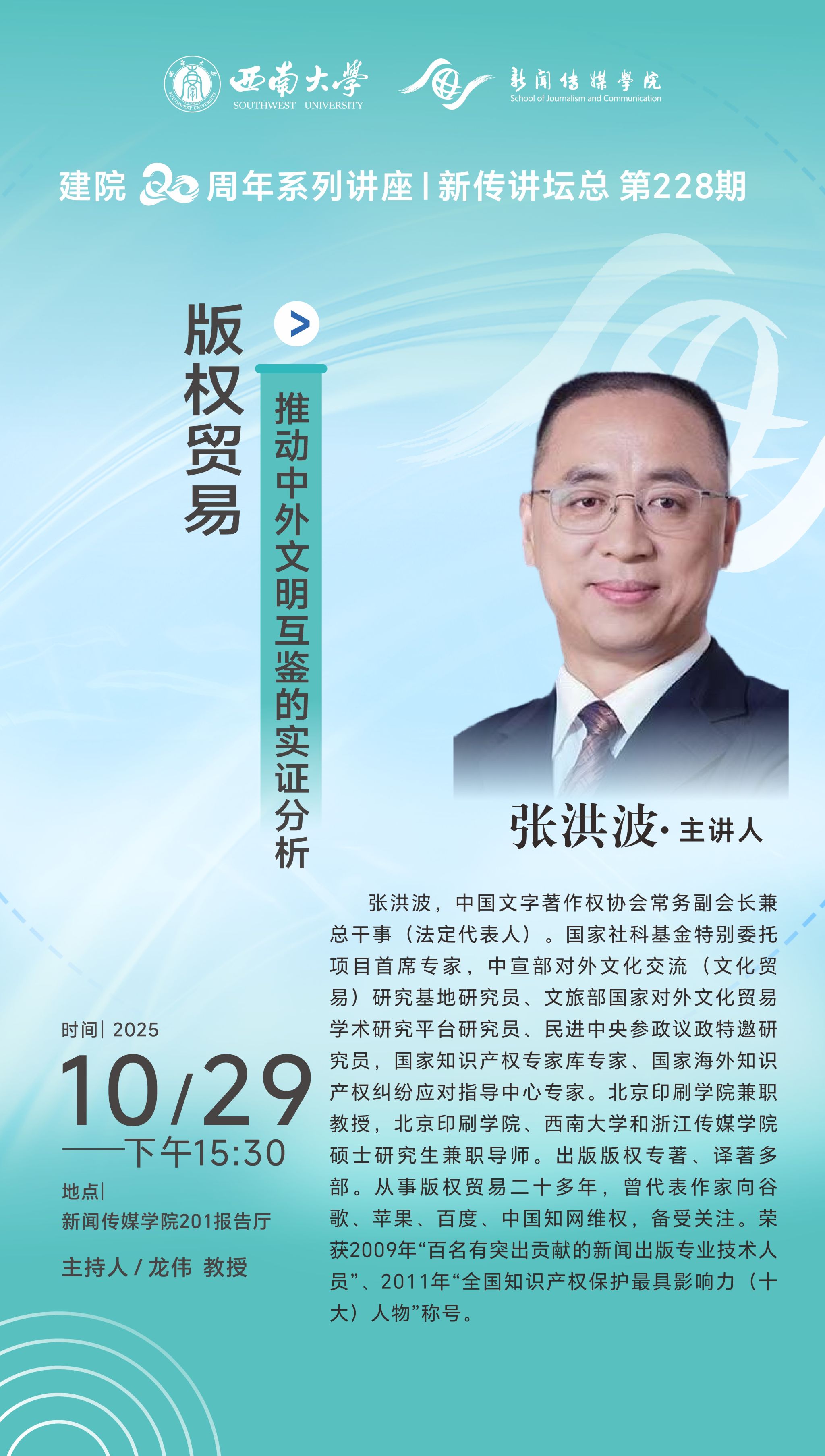 建院20周年系列讲座 | 新传讲坛总第228期 | 张洪波:版权贸易—推动中外文明互鉴的实证分析