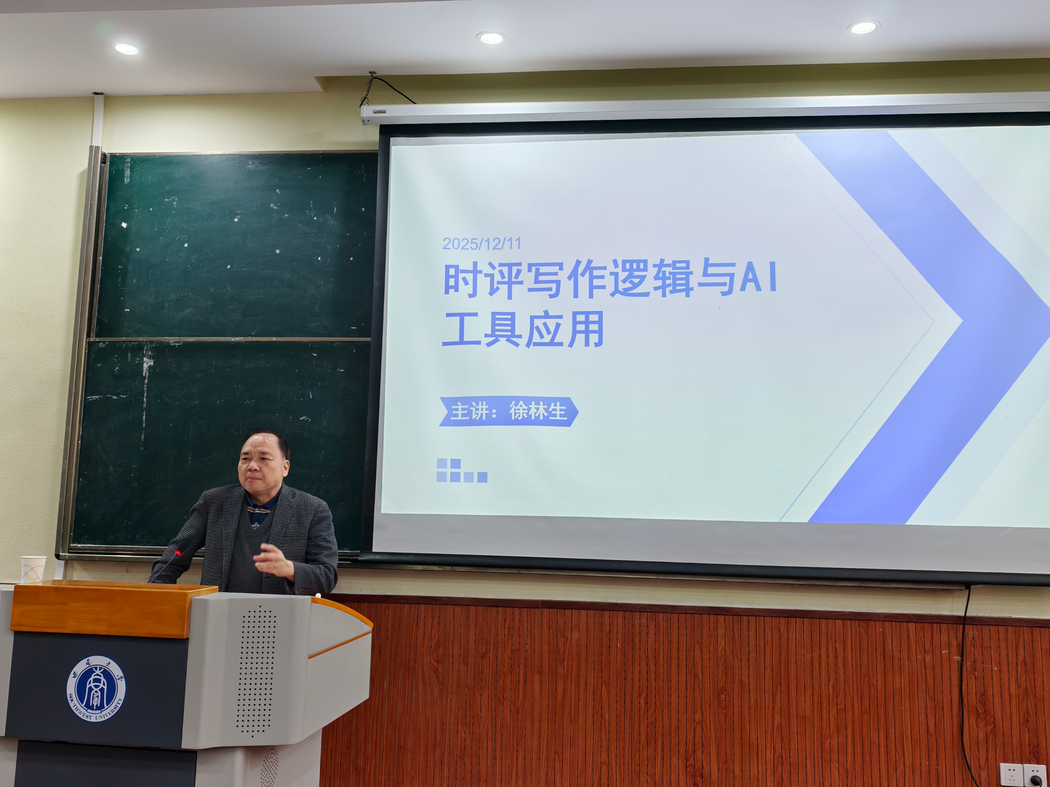 2025年12月11日下午,广东省作家协会会员、华中科技大学新闻评论研究中心特约研究员徐林生老师应邀莅临公司,在201报告厅作了题为《时评写作逻辑与AI工具应用》的专题学术讲座,,讲座由伟德国际1946青年教师刘念主持,共计60多名师生到场参加。
